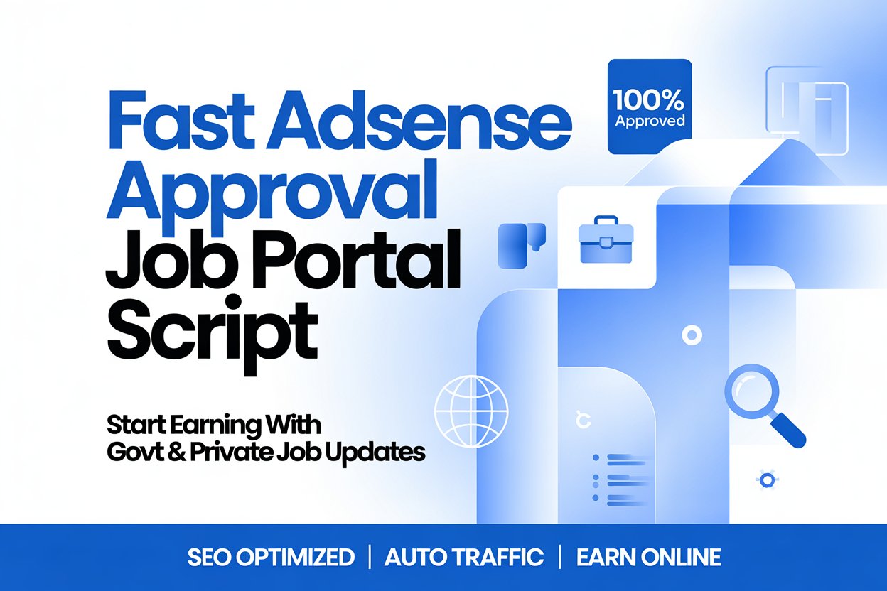 Launch your own Job Portal Website and get AdSense approval quickly with this highly SEO-optimized and content-rich script. Built specially for Govt Jobs, Private Jobs, Admit Cards, Results, Syllabus & Exam Updates, this script helps your website get instant traffic & fast monetization approval from Google.